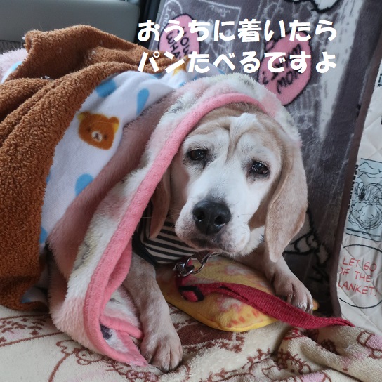 カンちゃんはぬくぬくの車でぬくぬくレンチン湯たんぽにくっついてすぐに夢の中のようでした。