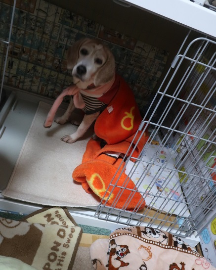 ねぼけて毛布かぶったままケージに入ってじぃっとしてたので