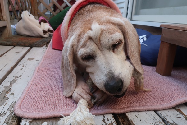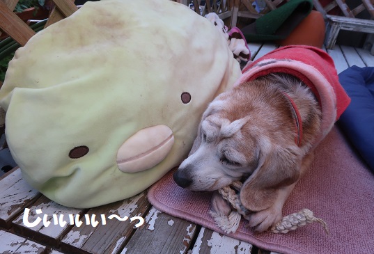 今日は1日中雨で かんちゃんは トイレに二回畑までいっただけでした。