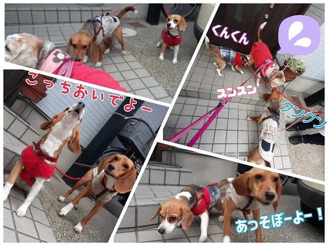 ビーグル犬クライン母ちゃんと一緒