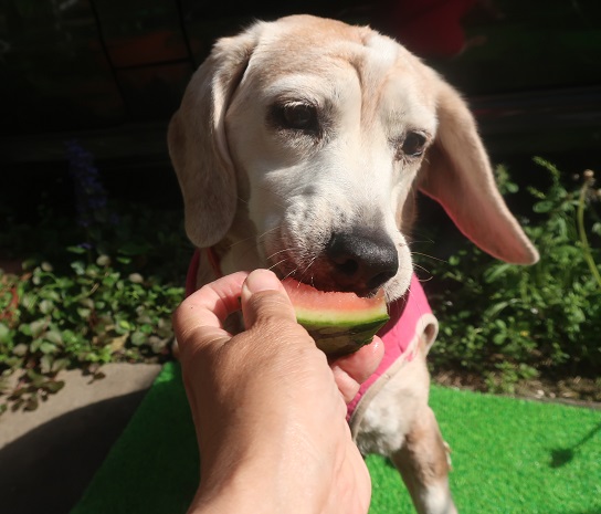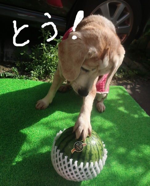 かんちゃんに 刀でスイカを切ってもらおうと思って♬