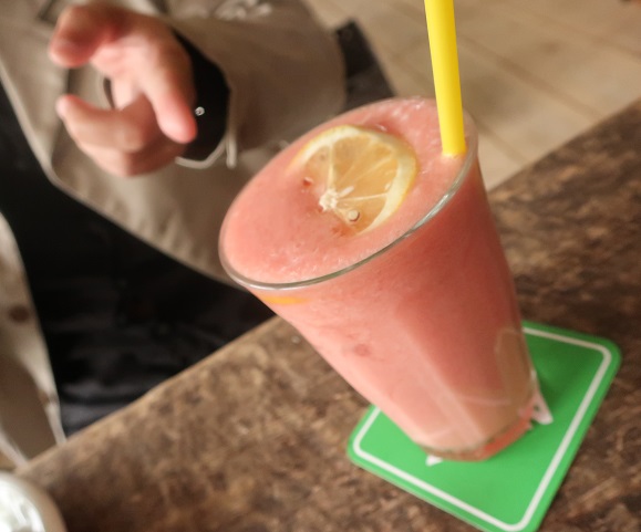トマトジュースでした。 作りたてのトマトジュースなのかな。