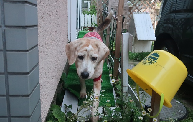 そのあとは 母ちゃんが庭にいるので かんちゃんも庭をうろうろ・・・・