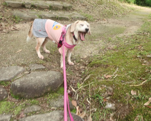 緊張したねぇ。あくびしてしっぽ下がってます。