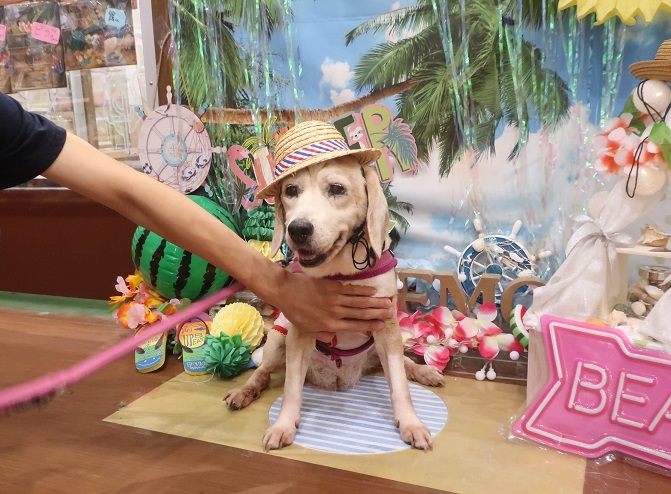 そして 撮影してもらうとこ。かんちゃんはお花のくびわをかけてもらって