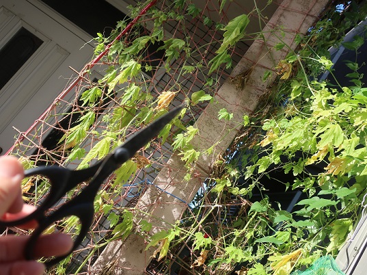 おやつのあと ちょっとお庭のゴーヤとトマトを抜きました。