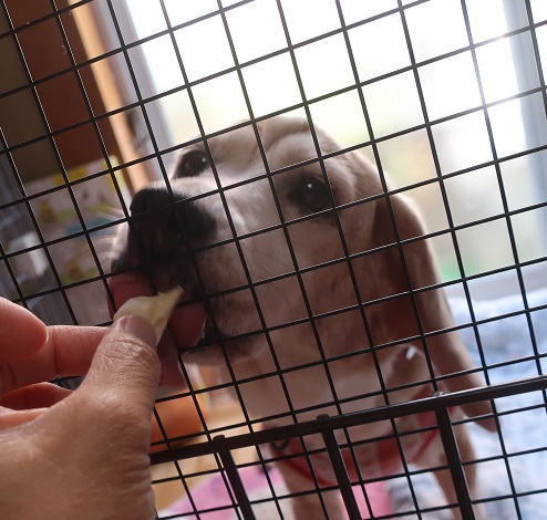 バレエに行っているあいだにお鼻の上が擦り切れたようになっていたカンちゃん。