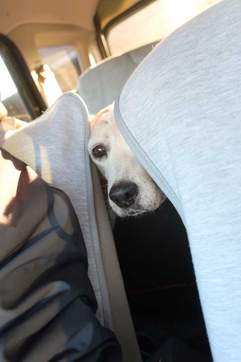車の中では 後部座席からかんちゃんのお鼻だけ 前の座席にいるね