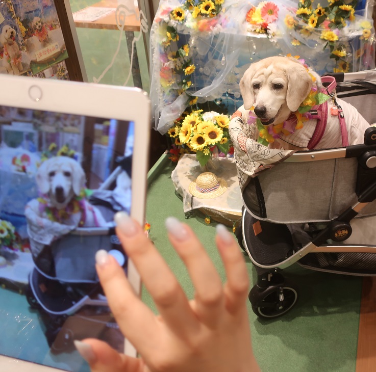 暑くてなかなか行けなかったペットショップに夏の撮影ブースでパチリ♪