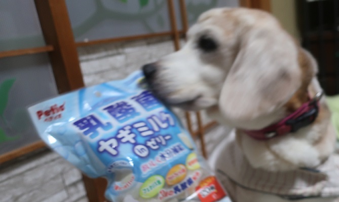 大好きなゼリー 今回はヤギミルク味。美味しいのかな?