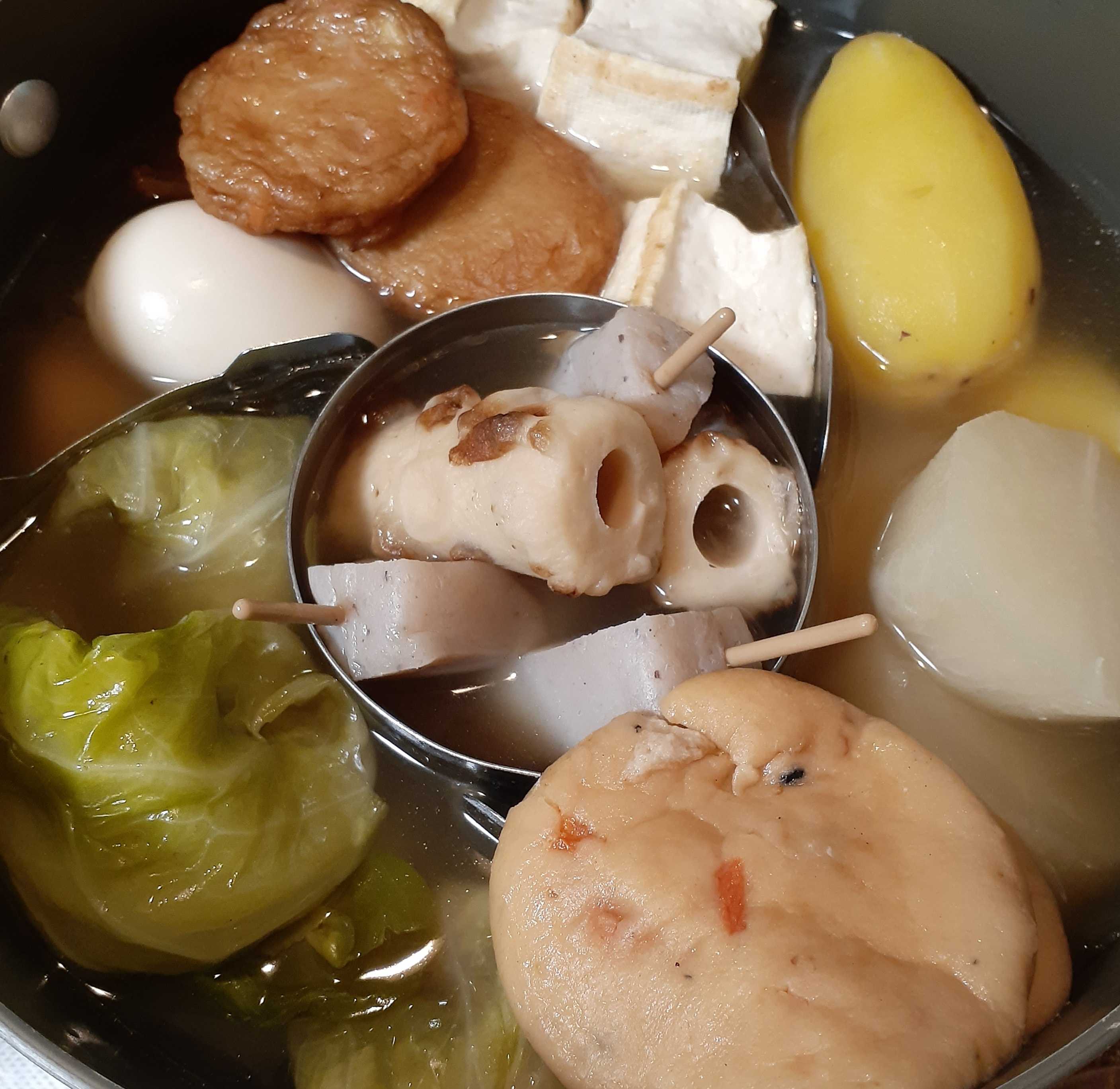 いろいろ買ってきた中に蒜山のきゃべつや大根、 串刺しコンニャクがあったので、キャベツはロールキャベツに