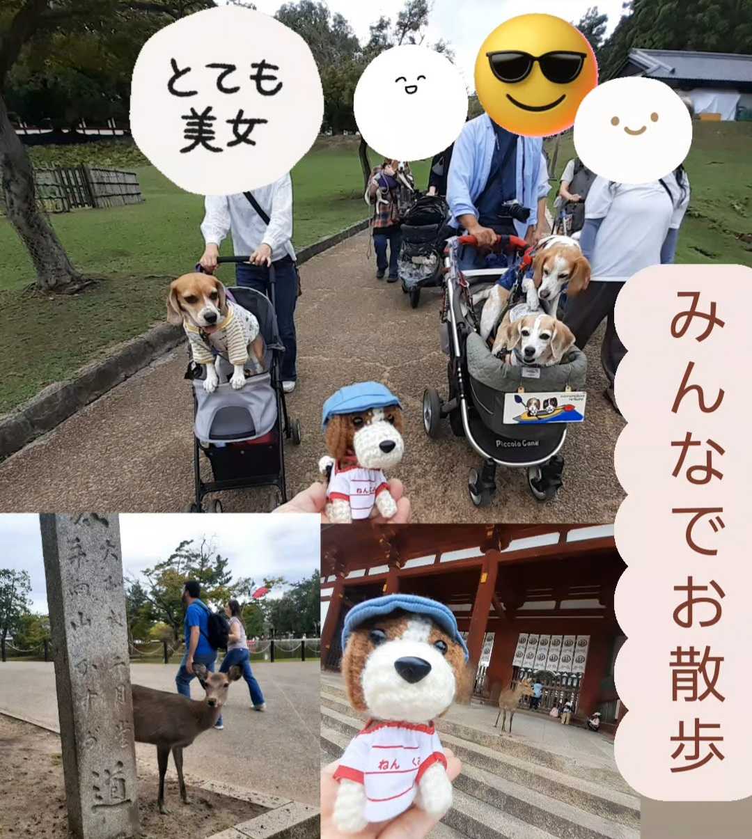 昨日は静岡からレモンビーグルのレモンちゃんが遊びに来てお散歩する会にいってきました。久しぶりにビーグルいっぱい、抱っこしたりリードをもったり食事中もみんなびっくりするくらいお利口さんでした。けんたんとカンちゃんもごはん食べたね。お昼ごはんのあとは商店街~猿沢池外国人のかたに次々声をかけられるビーグル達猿沢池で出会ったこの方はなんとアメリカの空港で持ち込みチェックをする関知犬ビーグルを使って働いているかたであっという間に空港で働けそうな落ち着きを放ち始めた2ビーグルさんでした。このあとも奈良町ぶらりを楽しんだ一行でしたが骨折病み上がりの私はここでバイバイしてとーちゃんの迎えの車で帰りました。ビーグルたっぷり吸収して大満足でした。楽しんだ母ちゃんに今日もポチっとお願いやんかですにほんブログ村文鳥ランキング