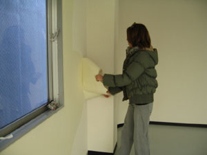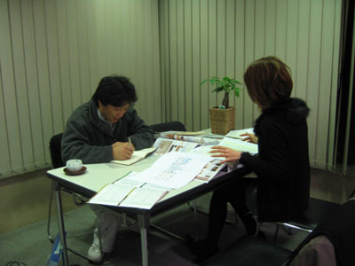 ついに今日から始まる内装工事。しっかり工事してもらえるようにと、自分達の気合を入れるためにも、今日はどの職人さんよりも早く行って待ち構えてよう!と、ku-maとふたり朝一番で現場へ。。。待ってる間に、こないだの続きで壁紙はがし。待っても待っても軽く1時間ぐらい誰も来ず・・・ひたすら二人で壁紙はがし、だいぶはかどりました。やっと職人さん到着。壁紙はがすのにいい道具をいろいろ借りて、しばらくはがし続けました。やりだすと結構楽しくて。親方に指導されながら見習いから、始めました。