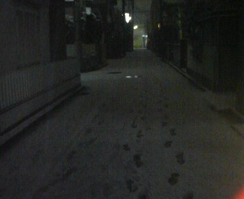 何年ぶりにこんなに雪がつもったんだろう・・・まだ降ってるしなんだか足跡つけてみた明日は少し早めに出勤しないと・・・電車遅れるだろうなぁ。