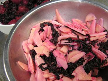 こんにちは。。 昨日今日ととてもいい天気です。。 朝晩はとっても寒いんだけど、お昼は暖かいよ~ お出かけの車の中は暖房はいりません。。 昨日はマクロのお料理教室でした。。 12月はお教室がお休みだったので、昨日先生とみんなに新年のご挨拶 あたしもレッスンがお休みだったから、のんびりおしゃべりできました。 さて、、今月のメニュー・・まずは「車麩のすきやき、、」 もちろんマクロのレシピなので、肉なし、砂糖なしです。。 すきやきなのに砂糖なしってどんな味???って思わない?? 実は、砂糖の甘さの代わりに、タマネギをあめ色になるまで炒めて それから調合したダシを入れ、無農薬、有機栽培のお野菜と お湯で戻した車麩を素揚げして、鍋の中に入れてます。。 お肉代わりが揚げた車麩ね~。。十分です!!!!←本当よ~、、==; 子ども達にも「今夜はすきやきよ~」と言わずに・・ 「今日は、車麩のすきやきよ~~」と言えば納得してくれるはず・・ と、みんなで大笑い。。。 やっぱ、すきやきって言えば肉だもんね~(^^;あはは~~ 副菜は・・根菜とふのりの胡麻和え・・・ 胡麻和えも、ひまわりの種とサラダナッツにゴマペーストと味噌を フープロでがぁぁあああ~~~!!として、ドレッシングを作ります。。 ふのりの紫が綺麗でしょ~~~~~~~ あたしふのりって初めて聞いたよ・・ ほら!!刺身のつまにちょこっと紫の海草が付いてる時あるでしょ?? あれ!!あれ!! でね~~、このふのりが美味しい~~~~ 根菜がレンコン、ごぼう、人参、ほうれんそう。。 全て、無農薬有機栽培の野菜たち、これを蒸してドレッシングで頂きます 皮も剥かずに全て完食。エコよね~~~ ふのりは天ぷらにしても美味しいらしい・・ あ~、、ビールに合いそう。。(〃ノ∇ノ)きゃ♪ デザートはいちごとキウイの寒天・・・ もちろん砂糖なし、りんごの果汁で味付です・・・ 主食は玄米ごはんを炊いて、みんなで頂きました・・・ 月1のマクロのお料理教室だけど、この日ばかりは 食べれば食べるほど、体が綺麗になっていく~~って感じなのよね~ やっぱり食は命・・・これこれ・・・ 月1、命の洗濯日です・・・ さてさて。。 昨日は私立高校の特待奨学生試験日でした。。 早いね~、、去年はりんごにお弁当持たせて送り出したのに・・ もう1年経つのかぁ、、 うちのピアノの生徒が私立を音楽専攻で受験したので あたしもマクロの料理を食べながら、ハラハラしてました。。←ほんとです 去年夏から、課題曲と楽典、聴音、新曲視唱など 週1のレッスンを週3呼んで、猛特訓だったのよ・・ 腰が痛かったけど、この子だけはお休みするわけにもいかず・・(泣) この子は年少さんから通ってて、出来がいいので心配はしてなかったんだけど どうも、新曲視唱で音程が外れたらしく、昨夜家に来て大泣きでした でも、演奏は問題なかったようなので、大丈夫かなぁ、、 相当悔しかったのか、レッスン室のピアノでもう一度弾いて帰りました。 だから~、、演奏は大丈夫だって~のにィ。。(==; 一気に弾いて、少しはすっきりしたみたい、、(笑) そうなのよね・・あたしもイライラしたり、頭にくる事があると あたしの場合はチェルニー30番をどれでもいいから一気に弾くの 意外とストレス発散になるんだわぁ、、 明後日が合格発表・・・さて、、どうなるかっ。。 あっ・・あたしがピアノを弾くってイメージ沸かないでしょ?(爆) 奴らのせいね、、(ーー;)、、、やれやれ~、、 次回につづく。。