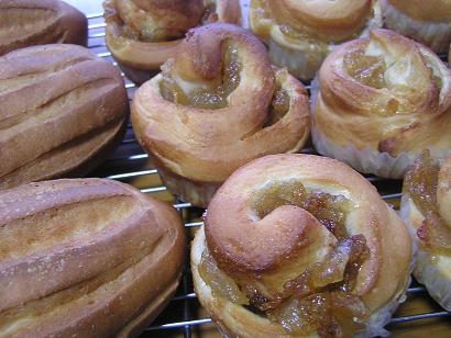 おはようございます・・ 晴天です。。 こんな日は家中のマット、シーツなどなど洗いたい気分なんだけど 昨日ぎっくり腰になり・・==; 昨夜、自分を戒めるために、お風呂上りにボディースーツを着てみたら ぐぎっ!!っと腰をひねってしまい・・・ それから立てない~~~~ 今朝も靴下履けず、、、、 今から整体に予約して行って来ます。。。 本当は車で20分のカイロが行きつけなんだけど・・ 運転できそうもないので、、(;;)、、、 歩いて行ける近所の整体に行ってみようと思います、、 初めてだからなんか怖いけど、この痛さ、、我慢できないし・・ チラシでは腰、、40分2000円だって・・・ タクシー使ってカイロに行くよりいいかなぁ、、 どんな先生だろう、、あ~怖い、、 でも行こう。。。痛いよ~~・・・・ レーズン&チーズパン 昨日午前中にお友だちのお宅で、週末にある町内会のバザーに出す パンの試作に行きました。。 ちょっと小さめ、、 これで1個50円で売るみたい・・・ こちらはあんぱん 中央に刺した指の跡がでかくて~~まるでベーグルみたいです。。 中に入れるつぶあんの量を調整して・・・ 1個60円。。。さ~何個売れるのかしらね~・・ そんなあたしは明日、りんごのクラス懇親会があります もちろん忘年会と銘打って、夜7時スタート・・・ もつ鍋で有名な居酒屋をチョイスしたんだけど・・ あたし行けるかなぁ、、 今回幹事なのよね~~~~~~ あ~、、こんな時に、、 とにかく、本日中に予約を入れて整体に行ってきます・・・