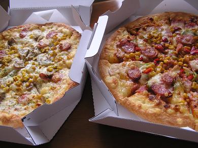 こんばんは~ 今日もめちゃめちゃ暑かったです。。 先週までは朝晩涼しかったのに、それもなし、、(汗) 窓開けて寝ても蒸し暑いのよ~~~、、 明日までは天気も持ちそうだけど、月曜からは雨みたい・・ 雨が降れば少しは涼しくなるかなぁ・・・ 今日のランチはデリバリーのピザ。。。 1枚1000円、、配達は2000円からなので2枚注文。。 1枚はグラタンタイプのソーセージピザ もう1枚はピザソースのミックスピザ 手抜きです、、(笑) 今日のピザはクーポン券で1枚1000円だけど・・ でもさ~よくよく考えるとピザって高いよね・・・ 自分で焼けばいいものを、今日はなんだか朝からだるくて・・ 旦那もお兄ちゃんも早朝より出かけたので、お昼はりんごと2人。。 土日に旦那が外出すると気分的にすごく楽。。 旦那は1人で実家に出かけてました、、あたしはお留守番。 お兄ちゃんは朝からバイト、、、 で、、あたしは2人を見送った後、掃除洗濯を済ませて テレビを見ながらコーヒーを飲み、新聞を隅々まで読んでたつもりが 気がついたら寝ちゃってて~~~ きっとシルバーウィークにゴミ出しを頑張りすぎたせいよね・・ なあ~~~~~んか体がだるい、、、間違いない、、 爆睡してたらりんごに起こされ、慌てた~~慌てた~~。。 そのりんごは昨日が終業式、りんごの高校は前期後期の2学期制。 なので今日から秋休みです。と言っても5日間。 通知表は郵送、、あ~心配、、 で、その秋休みの間にインターンシップ(職場体験)に参加します。 1年生の希望者のみで、第一希望の設計事務所には決まらず なぜか市内一押しのホテルに決まりました。。 さて、どーーなることかっ、、(笑)