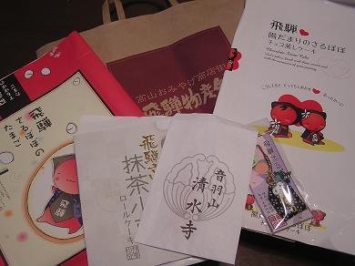 こんにちは・・ 先週の暖かさとは打って変わって、週末からすごく寒い!! 今日は朝から雨よ~雨、、、いや~ねぇ~、、、 1月の雨って珍しくない?? こんなもんかなぁ・・・ さてさて、、 月曜の朝は起きたくないあたしです。。 なぜって? 日曜にある大河ドラマ「龍馬伝」にハマッてて。。 坂本龍馬役の福山雅治の夢を見るのが日曜の夜の日課です、、(爆) 昨日の場合は・・龍馬が江戸で入門した、千葉道場の娘 貫地谷しおりが演じている、千葉佐耶役があたしという設定。 (〃ノ∇ノ)きゃ♪ この沙耶さん・・ 道場の中でも沙耶にかなう物はいないと言うくらいの剣の腕前・・ もちろん龍馬もあっさりやられまして・・ いつもは表情も変えないクールないでたちなんだけど・・ 龍馬と出会って、少しずつ女らしさが芽生えはじめ・・ その女心と、剣の修行で培った「あたしは強い!」という信念!! この板ばさみにあっちゃってさ~~~ 昨日は、その心を道場主、の父から見透かされ・・ 思わず龍馬に「誰にも負けない!!」と立会いを申し込んだものの 龍馬からは足を払われ、倒れこみ!!! そこに福山くん、、あ、、龍馬が馬乗りになって~~~~ 倒れた沙耶が「どうしてあたしは女に生まれてきたの、、」と 涙を流し、涙を見た龍馬は、沙耶の肩を抱き、、沙耶を励ますの・・ そこで沙耶役のあたし ↑ここでやっと登場、、(^^;きゃ♪ そのあたしは、福山君に抱きしめられて、、←すでに妄想中。。 そして二人は永遠の愛を誓い、二人で剣の修行に打ち込むわけ!! ↑、、大河はこんなストーリーではありません、、 あ~、、素敵、、起きたくない、、ずっと寝ていたい・・ なのに現実は5時起きでお弁当作りですから、、(ーー;)、、ふ~、、 そうそう! りんごが先週無事に修学旅行から帰って来ました! 岐阜県、飛騨高山でスキー研修3日、その後京都見学2日 名古屋~博多まで新幹線で移動の5日間、体調も良く元気だったみたい。 お土産は写真を撮る間もなく食べ続け・・袋のみ・・ 他にもいろいろ小物もありました。。 嬉しいのは清水寺の健康祈願のお守りと飛騨の夫婦円満のお守り 考えてくれたのね~、、夫婦仲はいいと思いますが、、 二度とやりたくないスキーは曲がる、止まる事が出来ずに 危険のネットに何度もひっかかり~、、 常にりんごにはインストラクターが3人くっついていて ネットに突撃するたびに3人ががりで助けてくれたらしく・・・ マイクで名前「りんご~!!りんご~!!止まれ!!」と 何度も叫ばれて、他のクラスの子からも 「りんご、、かなり有名になったと思うよ、、」と言われ スキーは散々だったみたい・・ でもお昼のカツ丼が旨かったとの感想、、、 お兄ちゃんとは正反対でさ~、なんでこうも運動オンチなのかね~。。 母に似たと言われたくないわぁ、、( ̄∇ ̄;)やれやれ。。 次回につづく。。