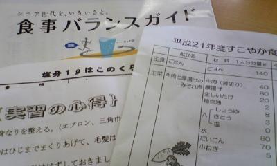 こんにちは~。。 昨日までの雨がうそのように本日は晴天です・・ でも風は強くて~~寒い!!! 外に出ると、吹き飛ばされそうでとっても怖いわぁ~(〃0〃;)きゃ♪ 今日は朝から、市の食生活改善講習会に参加してきました。 実はあたし・・・ マクロの料理講習を1年終了し、2年目に突入するのですが・・・ 将来、今の仕事がいつまで現役でこなすことができるかわからないし レッスンを辞めたときに、何もする事がなく、ぼ~っとしないように その後も何か社会にかかわっていたい。。。 そういう思いから、市の食生活改善推進員になろうと決意しまして 本日、その推進員さんが指導される料理講習会に参加してきました。 健康的な食生活とは何か・・・ 家庭内での減塩のすすめ・・・ まずは健康な体つくり・・・ マクロの知識とはまた違って、とても身近な話を聞くことができました。 本日の献立、、 主食、ごはん 主菜、牛肉と厚揚げのみぞれ煮 副菜、さといもの変わりあえ、、きゅうりのさっぱり漬け 1食分、塩分は3,3グラム。。。 確かに牛肉と厚揚げのみぞれ煮は一口目は薄味に感じたけれど 大根おろしのみぞれ煮が味を引き締めて、だんだん旨みが出てきて さっぱり美味しく頂きました。。 さといもも湯がいて突き溶かし、白和えみたいにして食べるの!! さといもを潰して小松菜とにんじんとこんにゃくを入れて ごま味噌で和えるんだけど、とっても美味しかったよ~~ 30名ぐらいの参加人数だったので、料理の写真を撮り忘れ~ 来週20日も参加する予定なので、その時は忘れないようにしなきゃ~ で、、日本人の食事摂取基準では塩分摂取の目安は 男性10グラム未満、女性8グラム未満らしいけど・・ 来年度からは、男性9グラム、女性7グラムになるらしいです。。 いろんな話が聞けてほんと勉強になったわぁ~。。。 食育に興味があって、何か勉強できないかなぁ、、と思っていたら マクロのメンバーから「市の推進委員」の話を聞いて あたしにもできるかも、、と思ったの。。 来年3月~1年間6回の講習を受けて終了すると 市の食生活改善推進員として活動ができるらしいです。 校区の小学校、中学校、高校などの家庭教育学級で公演、 調理実習の指導をしたり、勉強会を開いたり すべてボランティアだけど、自分の楽しみになるかな・・ 基本、しゃべる事と料理は嫌いじゃないのでやってみようと思います さぁ~~来年の春からはまた1年、食育の勉強です!!