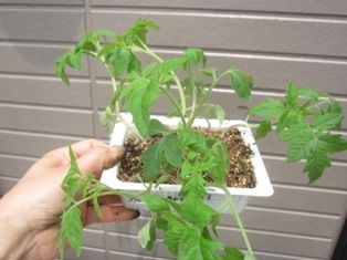 5月2日のネタ ホーム桃太郎鉢に定植トマトの育苗がうまくいっている今年は夏に収穫したいな
