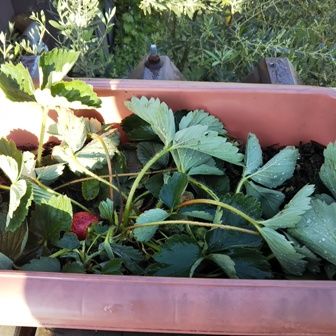 昨日5月18日のネタ屋上菜園先週、カンカン照りだったので、収穫間近の苺のプランターがピンチに!でもちゃんと実がついているそれにぎりぎりで株も無事だったたくさんなっている!おいしそう!なんと!40個収穫できた累計65個形がいびつなのも残らず収穫したいびつなのは苺酒にしようと思うホワイトリカー、買ってこよう!