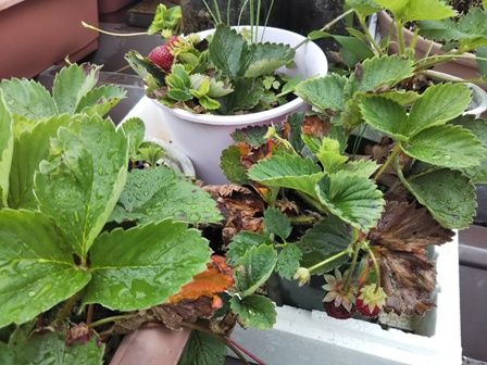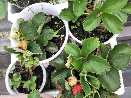 この春、大収穫だった苺🍓まだ結実している6月29日の写真屋上菜園の苺屋上菜園が日当たり・風通しがよすぎてプランター植えの苺が枯れそうになるので最近は保水の工夫をしているこれはペットボトル植えで、発泡スチロールに入れているこれだと1週間ぐらいは水やりの心配なしまだ収穫できそう