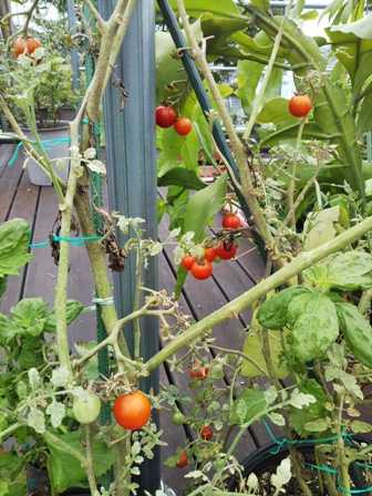 7月18日屋上菜園のミニトマト「キャンドルライト」22個収穫キャンドルライトの累計43個でも・・・・・枝はこんな状態なのでバッサリと切り戻した屋上菜園、トマトたちにとっては暑すぎる!!