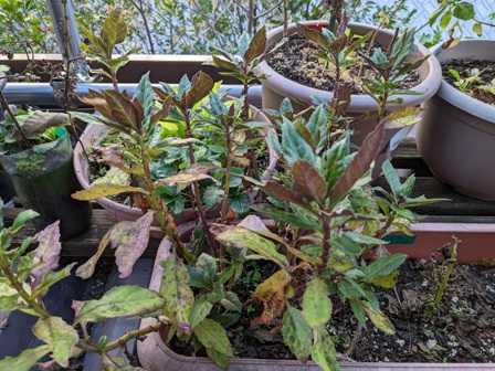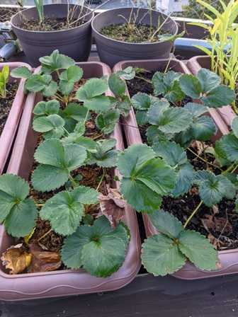 11月6日に撮った写真屋上菜園のプランター植えの苺たち夏に育苗して9月にプランターに定植した上の2つの写真は「宝交」ランナーでよく増える四季なり苺「いつでもベリー」夏が暑すぎてずいぶん枯らしてしまったけどランナーでどんどん増えたので、まだ定植できていない苗がいっぱいあるくらいこの夏と秋家庭菜園サボりがちだったけどなぜか苺の育苗だけはうまくいったなあ屋上菜園が苺畑になりつつあるまだ定植していない苗も、冬に備えて早く植えないと・・・・