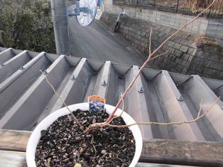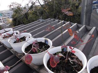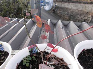 夏の間、暑さと水不足で枯れそうになったので、鉢に植えて屋上に引っ越しした