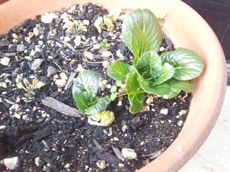 水菜の根っこを鉢に植えておいたら、こんなに立派になった!