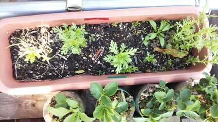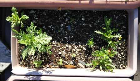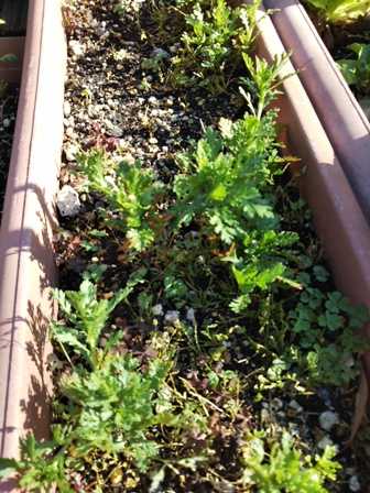 屋上菜園の プランター植えの 春菊 2024.02.24