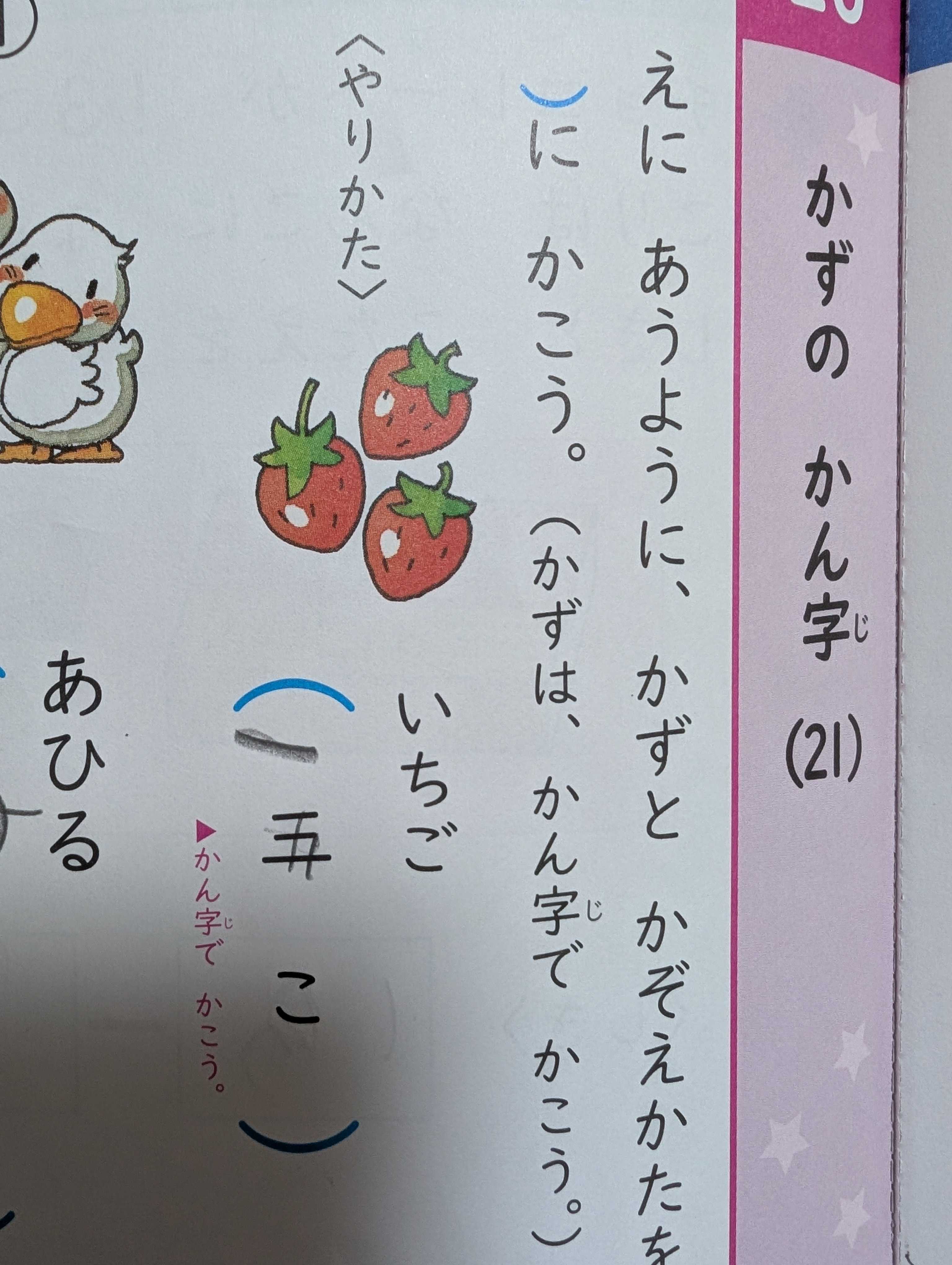年長の半年頃からやってるポピーこんな間違えかた…今しかできないと思うのです笑笑ちなみに正解は 三 こ です。数字を漢字で書いて、単位?をひらがなで書きます。子供の絵を見て 四人(にん、は習ったので漢字で書く)は合ってたのに一問目だけ文字数多いなと思ったら 間違えてました。大人になったときに見せてあげたいです笑(^_^)小学館 ポケモンずかんドリル 小学1年生5冊セット【新品】小学生 小1 算数 国語 数 図形 足し算 引き算 ひらがな カタカナ 漢字 バトル ポケットモンスター ポケモン 迷路 ミニゲーム 遊び 達成感 ずかん 図鑑 シール 10分 学習 学習指導要領 自習 ゲーム ドリル 参考書夏休みは文章題を買ってあげた喜んでやってました。シールを集めて貼るのが楽しいみたい。 冬休みは漢字!と言われたけど、ポピーが2ヶ月分溜まってるからそっち先ね。と言ってます(●`ε´●)ドラえもん はじめての漢字ドリル 1年生 [ 小学館 国語辞典編集部 ]最近ドラえもんも見てるからこっちでもいいかも?