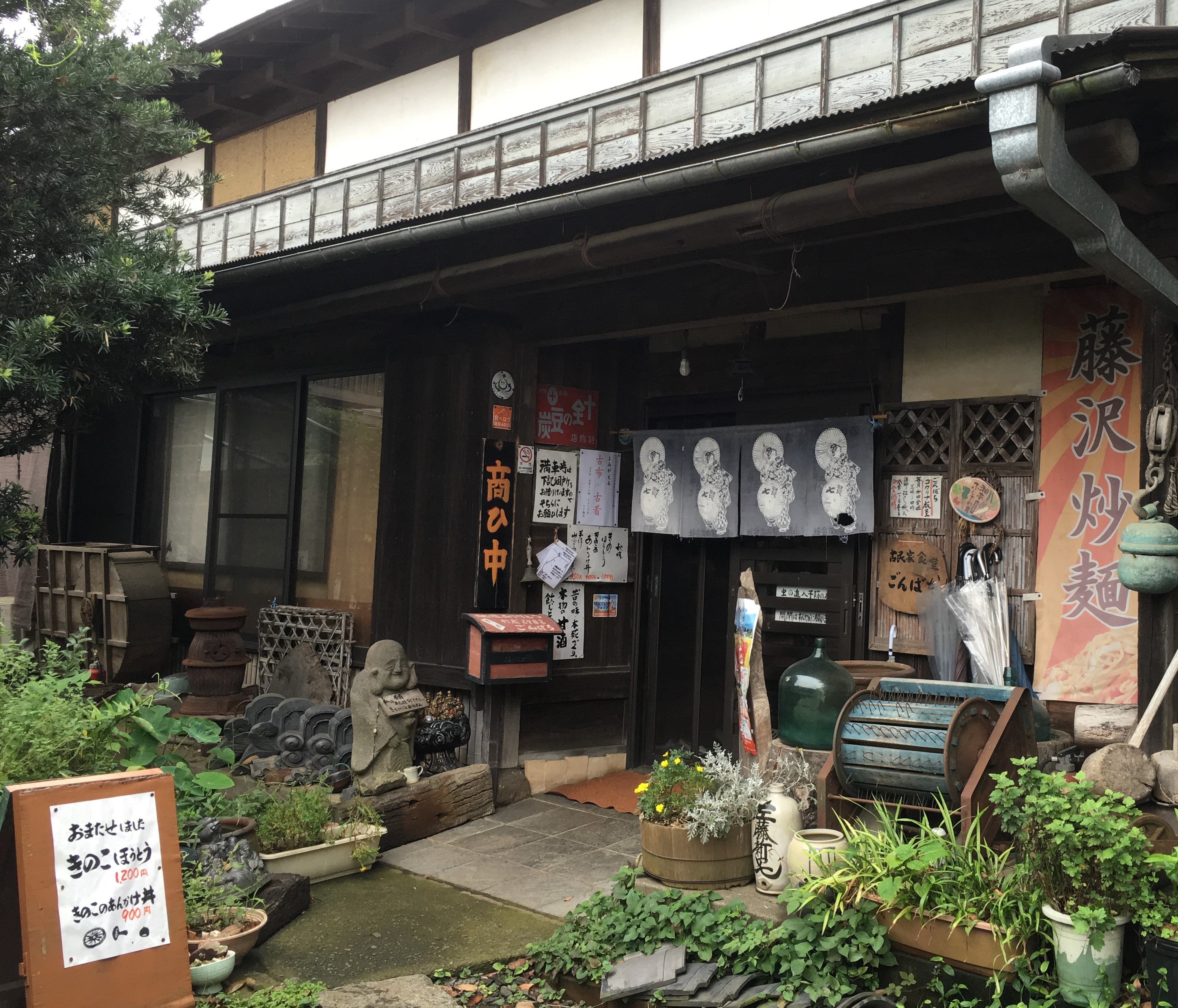 久しぶりに名古屋時代のお友達とランチしました。お店は、ごんぱちさん。藤沢の畑と山の中にありました。ほうとうが名物だそうです。http://hekkoro.com/13時半くらいに到着しましたが、駐車場も車でいっぱいでした。昔からここに建っていたんだろうなぁ、という歴史を感じる佇まい。広いお座敷と、土間にテーブル席というスタイル。お友達は、ほうとうが大好きで、「とにかくおいしいから食べてみて!」と一押しの事もあり、色々ランチはあったんですが、食べたことがない「野菜ほうとう」にしました。ほうとう、基本的には、味噌味が多いそうです。「最初、お野菜少ないなぁ、足りるかしら?」と心配だったのですが時間が経つと、ほうとうってお腹に溜まってくるというか、お腹が張ってくるというか、、おなかパンパンになりました。久しぶりなので、話も尽きずあっという間に15時過ぎてしまい、その後は湘南Tサイトへ連れて行ってもらいました。建物の感じが、九州に住んでいる時に行った「武雄市の図書館」にとてもよく似てました。同じツタヤが経営してるので当たり前かもしれませんが・・https://www.epochal.city.takeo.lg.jp/winj/opac/top.doカフェ経営、起業についての本も沢山あり、ついつい買ってしまいました。もっと勉強研究にいそしみます(^^)