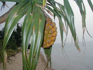 沖縄の海岸でよく見かける植物でアダンがあります。最初はパインの仲間かな?と間違えたぐらい似てました。熟すと黄色くなり、地面に落ちてヤシガニやカニの餌になりますよ。乾燥した葉は、焚き火するときに使います。油分が含まれているのか、よくバチバチと燃えますよ。実の芯の部分は食べれるそうで、昔、よく食べたとおばあさんが言ってました。南国らしい植物でした。