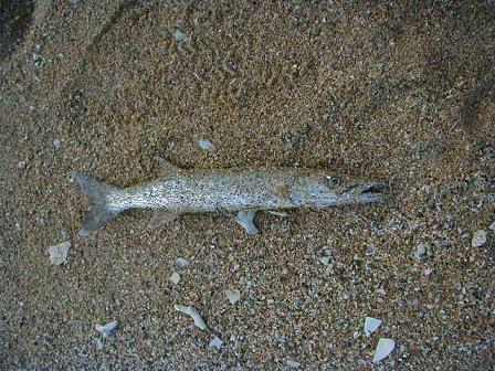 最近、曇り空の石垣島夕方の満潮にルアー釣りに行きました。場所は静かな海面の名蔵湾、小さいスプーン、スピナーを何度か投げるとすぐに釣れたカマス砂浜で大暴れするんでから揚げ粉が、たくさん付いた感じであります。20センチぐらいかな!無風状態の夕方、蚊に襲われながら体を踊らせての釣りです。痒い!!スピナーに変え、あまり遠くには飛ばないけど試してみた。今日は腹をすかしたカマスが多いのか、また釣れた。去年の台風で海岸線の大きな木が倒されたポイント!海に入りながらの移動なにやらカニや小魚がたまにいるぞ!!小さい当たり、何だろうと、途中で逃げたのは10センチほどのコトヒキ君でした。メッキがこないかねー!最近釣れてない。