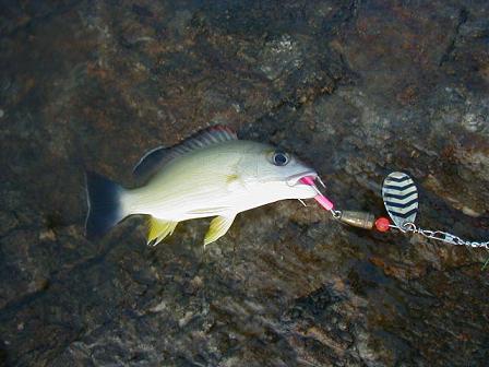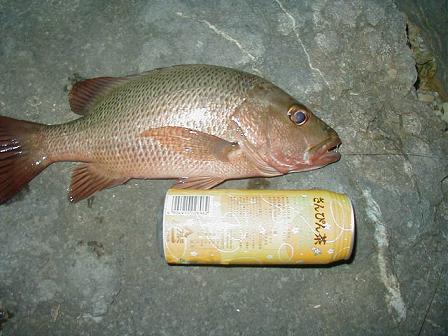 先週の夜釣りではゴマフエダイ35センチから45センチオーバーなど合計6匹、小さいコトヒキ2匹と、なかなかな釣果でした。 この大きな口 一口でタマン用の大型ハリを飲み込んで強い引きでドラグが ジーーージジーーーーーひたすら強い引きでした。