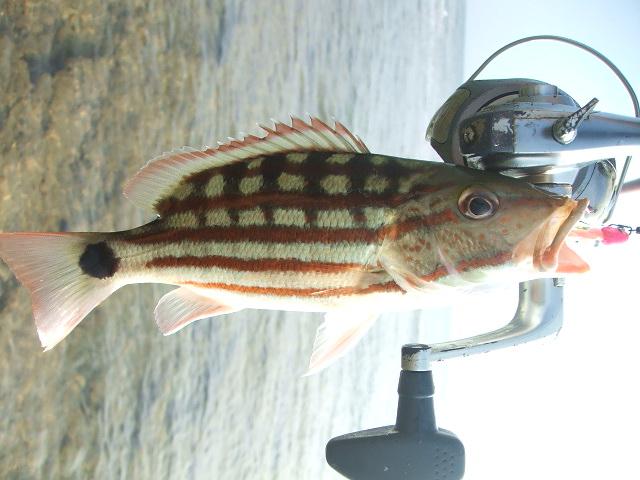 夕方、石垣島新川付近、またウェーダー履いて岸から50メートル歩いたポイント珊瑚があちこちにあります。スプーンでダツが掛かるがばれた。釣り針の掛かりにくい魚なんでしょうか?移動しいながらホッパー、ミノー、ワームと、いろいろ投げるがアタリなし透明度はいいけど、波があるんで深いポイントが分かりにくいなんとか釣れたのがアミメフエフキダイ25センチぐらいのが一匹のみあらたなポイント探しますか?
