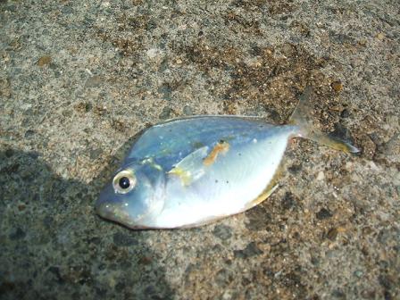 なにやら石垣島郊外の港でミジュンがたくさん釣れているとの情報あり!さっそく本日行きました。 10時到着! 釣り人10名くらい なんか?おじいちゃん、おばあちゃんが、農業の合間に釣りにきたような人達 おばさんながら次々に、さびきでミジュを釣り上げている さっそく自分も準備し、さびき投入 久しぶりじゃないか?さびき釣りなんて、高校生の時以来だ オキアミをかごに入れて上下に振り、魚を待つのみ! こない! 一番端のオオバサンバンバン釣り上げてるじゃないか? しばらくして竿先にブルブル!! きた!!!!! 小さい!5センチぐらい!何だろう!この魚 こちらにはミジュンの群れは来ないのか? しばらくして 竿を置いてお茶飲んでると 竿先大きなアタリ! メッキでした。 時たまミジュンを襲いに60センチ以上のガーラが暴れている しかし、日差しきついな! 海面にはダツが泳いでるんでスピナー投げ、釣れるか試すが食いつなかい 12時前終了 釣果 ミジュンがいないじゃないか?