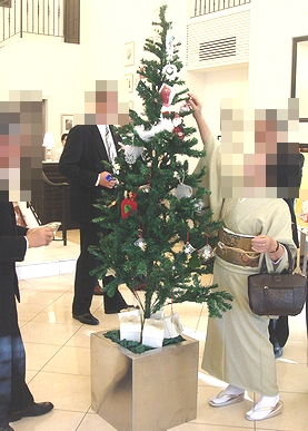 ヘアメイクはまずわたしから*(とはいっても結果的に彼の着替えヘアメイクは30分程でチャチャッと終了。笑)ヘアメイクをしている途中から、カメラマンさんやビデ撮影の方、そして式の最後にVTRで流す撮ってだしエンドロールというものをたのんでいたので、エンドロール専門のビデオ撮影の方もも合流。「こっち向いてくださ~い(´・∀・`)ノ 」なんて言われてそれに応えながらのヘアメイク。ヘアメイクがおわったらボディメイク。ドレスから出る肌すべてにお化粧して綺麗な細かいラメパウダー2日前に腕に切り傷を作ってしまっていたわたしの傷もしっかりと見えないようにカバー!ボディメイクだけで、もぅこれでもかっ!!ってくらい綺麗にみえちゃうから、これはやって良かったそのうちにプランナーさんが「ツリー、とっても素敵になりましたよーヾ(*′∀`*)ノ」と言いながらお部屋へ*式場のサロンにあった鉢(??)を中に植わっていた物をぬいてくれて、そしてわたし達の持ってきたツリーをこんなに素敵に植えてくださいました*ホント感激!!こんなにもやっていただいちゃって感動( ̄^ ̄゜)。グスンみんな持ってきてくれたオーナメントを好きな場所につけていってくれてる*もぅその頃にはわたしの方の参列者の職場の人たちが時間よりも早めに到着していたようで、それをきいたわたしはワクワク♪受付のあるロビーには、真ん中に2メートルちょっとの大きなクリスマスツリー。そして、持込をしてプランナーさんに飾りかた等はお任せした、蓮の花のかたちをした大きめのキャンドル、バラのフローティングキャンドルetc…。ウェルカムボードはわたし達からみんなへのちょっとしたサプライズで大きな和装写真のボード。和装はしたいと思っていたけれど式で和装含め3着きるとバタバタしてしまうという事で和装は断念。もちろんお金の部分もあったけれど(´-ω-`;)ゞ親は「着物なんて着なくていいよ~!」なんて言っていたけれど、ホンネはどうかなぁ。おばーちゃん・おじーちゃん達は、きっと「見たいなぁ」って思ってるんじゃないかな*そんな事を思っていたときに、、ゼクシィを見ていてたまたまみつけた写真屋さん。とっても今時な感じのSHOPでカメラマンさん達も若くてもちろん、古風な感じで撮ってくれる写真もあれば今時っぽくオシャレにとってもくれる。ちょっとSHOPまで遠めだったけれどウエルカムボード作りと簡単な前撮りの様な感じで写真をとってもらう事にしました(≧▽≦)ノA1サイズの大型ウエルカムボード594mm×841mmで、でっかくって気に入ってますとってもみんなに好評だったこのボード。顔をかくしてあるけれど、実はすっごくわたし、笑ってる(* ̄∀ ̄*)それがとっても楽しそうで、しあわせそうで良かったみたい♪式が終わってから色んな方にいただいた写真の中にも必ずこのウエルカムボードの写真があってうれしかったなぁ*家族もみんなとっても喜んでくれて、今では実家に飾られています(笑) design by sa-ku-ra*