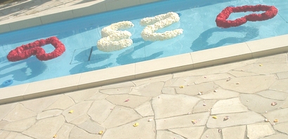 作っていたプール装飾をじゃーんこれを、プールに浮かべます.+:。(*'▽'*)゚.+:。もちろん、1個ではなくって、計6~7個くらいかなぁ。この赤だけじゃなくって、あとは白も*このお花はもちろん造花使える100均で購入!!左下にあるものが100均で買った元の状態*よくトイレとかにありそうな円状になったモノ(笑)このお花を1個1個切り取ってお花以外の葉etc・・・を取り除いて、あとはハートの発泡スチロールにとり付けていくと出来上がりです*:.。☆..。.(人'∀`)ワォ*:.。☆..。.ちなみに、どうやってとり付けていこうか悩み・・・ボンドとかだと、やっぱり取れそうで心配で、思いついたのが、マチ針それも、アタマにパールの様なものがついたマチ針!↑この中心部分にささっているのがマチ針ですっ*これなら、良い感じに刺さるし、見た目も(b ̄▽ ̄)オッケ♪思っていたよりcuteにできました~!!ハート1個あたり、全ての材料費入れても400円位で完成うんっ!満足満足~ヾ(●´∀`●)ノこれから白のお花もつくりま~す design by sa-ku-ra*