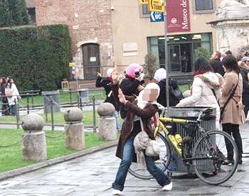 この前の私のポーズ*続いて、周りの人たちのポーズをどうぞ(*´・w・)σ色んな国の方がみんなポーズ*やっぱりピサ来たらコレやんなきゃネ(*-∀-)ゞエヘ本当は斜塔の上にのぼりたかったのだけれど、予約が必要で、私達がピサにいる事ができる時間にはもぅ予約がいっぱいで。ということで今回は残念ながらのぼるのは断念( ´・ε・` )プーこの斜塔がある地域はもともと地盤が良くなかったらしいのだけれど斜塔を建設した人たちはこの地域の人でなかったので地盤の事をを詳しく知らなかったとか。それでそのまま着工しはじめてしまって、着工途中からもう傾き始めていたのだと*斜塔の根元にコンクリートなどを流し込んだり色々して今は傾きはとまっているらしいけれど(というより、傾きはちょっと垂直方面に戻った位らしい)現在の色んな知識やモノを使えば垂直に戻す事も可能なくらいらしいのだけれど・・・斜めだから有名なのだし(-ε-●)ネ。 design by sa-ku-ra*