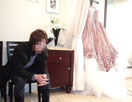結婚式朝7時前に式場到着新婦のわたしがヘアメイクしはじめる間彼は緊張メーターがすでにMAX!!顔色がワルイワルイ~っ。そんな中わたしはルンルン全く緊張感なしそんな最中の彼の写真奥でわたしはヘアメイク開始中右にかかっているピンクのドレスはお色直し後に着たpompadourというドレスカタログをはじめて見たときからひとめ惚れずっとこれが着たい!!って思ってお値段は見ないフリしてもどれるものなら戻りたいなぁなんて とっても幸せな魔法にかけてもらった日 design by sa-ku-ra*