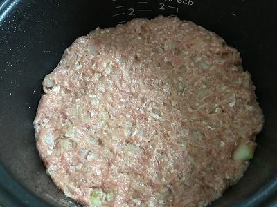 炊飯器の内鍋にサラダ油を少し入れハンバーグ種をしきつめ
