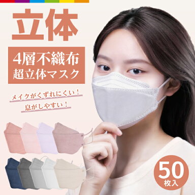 6個(300枚)以上で送料無料2094円♪マスク 不織布 立体マスク 血色カラー 50枚 4層構造 男女兼用 大人用 3D立体加工 高密度フィルター韓国マスク 防止 防塵 ほこり 黄砂 花粉対策 通気 ウイルス PM2.5 50枚セット