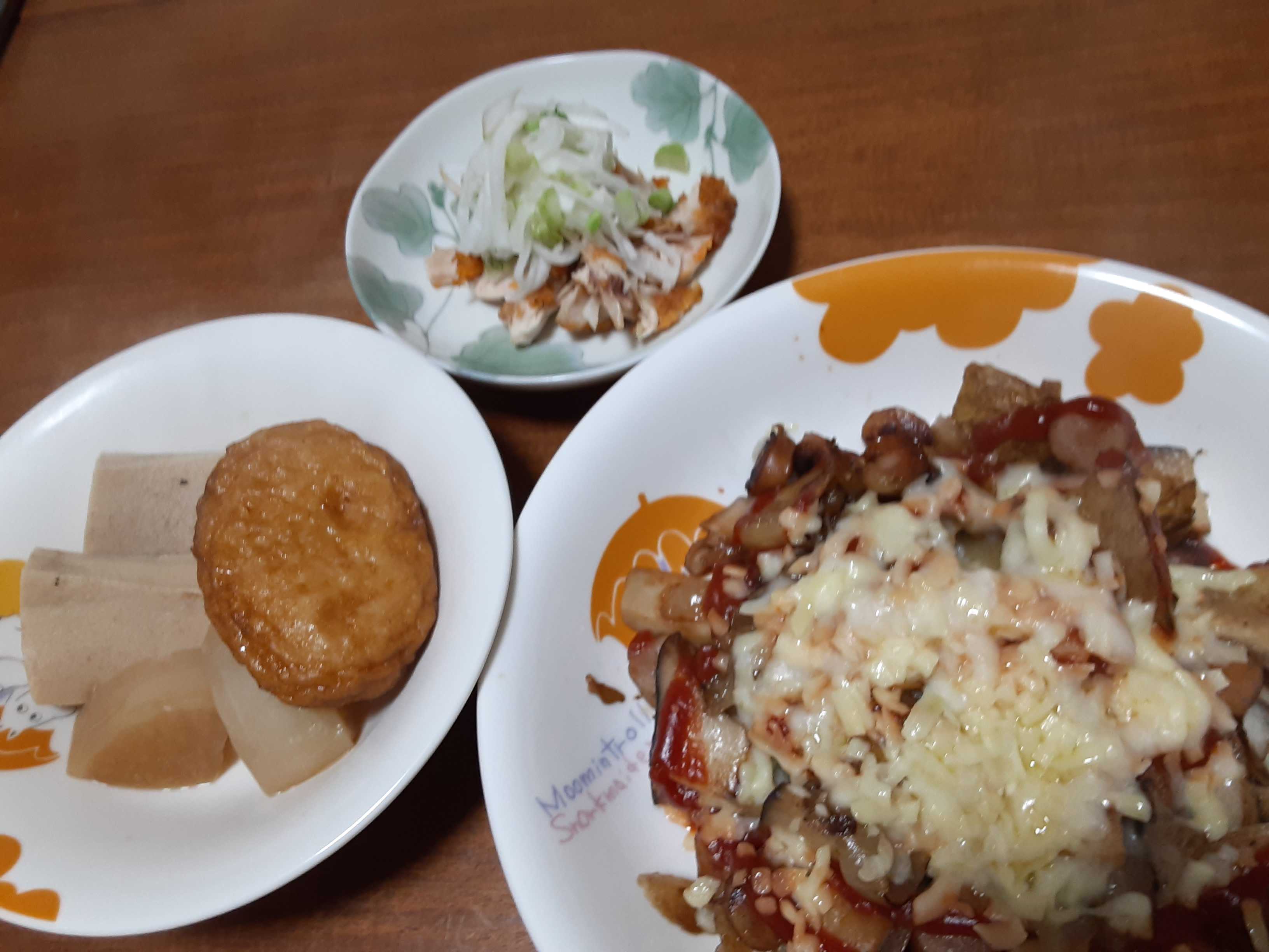 今宵は高野豆腐の炊いたん(大根&さつま揚げ)・ジャーマンポテト風・