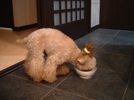 二週間前ぐらいから私の目の周りが赤くなって腫れた上にカサカサに(涙)ネットで症状を検索すると…アレルギーとか花粉症とかにヒット(涙)そーいうのとは無縁に生きてきたのにーーー!!先週なんて右目だけが一重になってました。一重って…なんだか知的(違)でも[同時ビフォアフター顔]もどうかと思うので…治って欲しいなぁ(病院行け)… … …数日過ぎてしまいましたけども…2月12日は…バジル達、チビチビ4兄弟の二歳の誕生日でしたショウ君、ルイ君、ラフィ君、バジル、おめでとーー!!もう二歳だなんて早いものですねぇ皆、元気で…そしてご家族の皆様に可愛がって頂いてるので、おばちゃん嬉しいそして安心しています^^これからも元気で可愛い天使でいてください はぐはぐはぐ…チビワンの残りゴハンを頂くバジル。。またもや赤ちゃん返りかそーなんです。最近のバジルは欲求不満気味。赤ちゃん達に焼きもちを焼いてるような行動がチラチラと。。。赤ちゃん達に「可愛いでちゅね~おいで~」なんて言った後に「バジルが一番可愛いでしゅよ~」なんて言ってると結婚サギになった気分(笑)でも本当に皆可愛いんだから仕方ないっ(笑)… … … …本日36日目…長女たん…660g次女たん…620g三女たん…620g皆、なんとなく引き締まってきました。ここ数日で、すっかり赤ちゃんから子犬に^^お顔も詰まり気味(何でや~!)物凄く毛ぶきが良いので二回目のオシリ周りカーーーット 長女たん 次女たん 3ワン分のオシリ周りでこんなに~~(笑)最後に3女たん ふにゃ~~~疲れたよ~~実は赤ちゃん達が立ち上がった途端より、ステイとかさせています(練習練習)骨格とか皆全然違うのがよくわかります。やっぱり三女…良い気がします。只者じゃない感じが漂ってます。でも私もパパも親バカちんだからなぁ。。。(今いち自信無し)まぁ…楽しみながら見ていきましょ~↓いつもお読みくださいまして有難うございます ブログランキングに参加してます。いきなりプードルらしくなってる~早クリックお願いいたします~^^