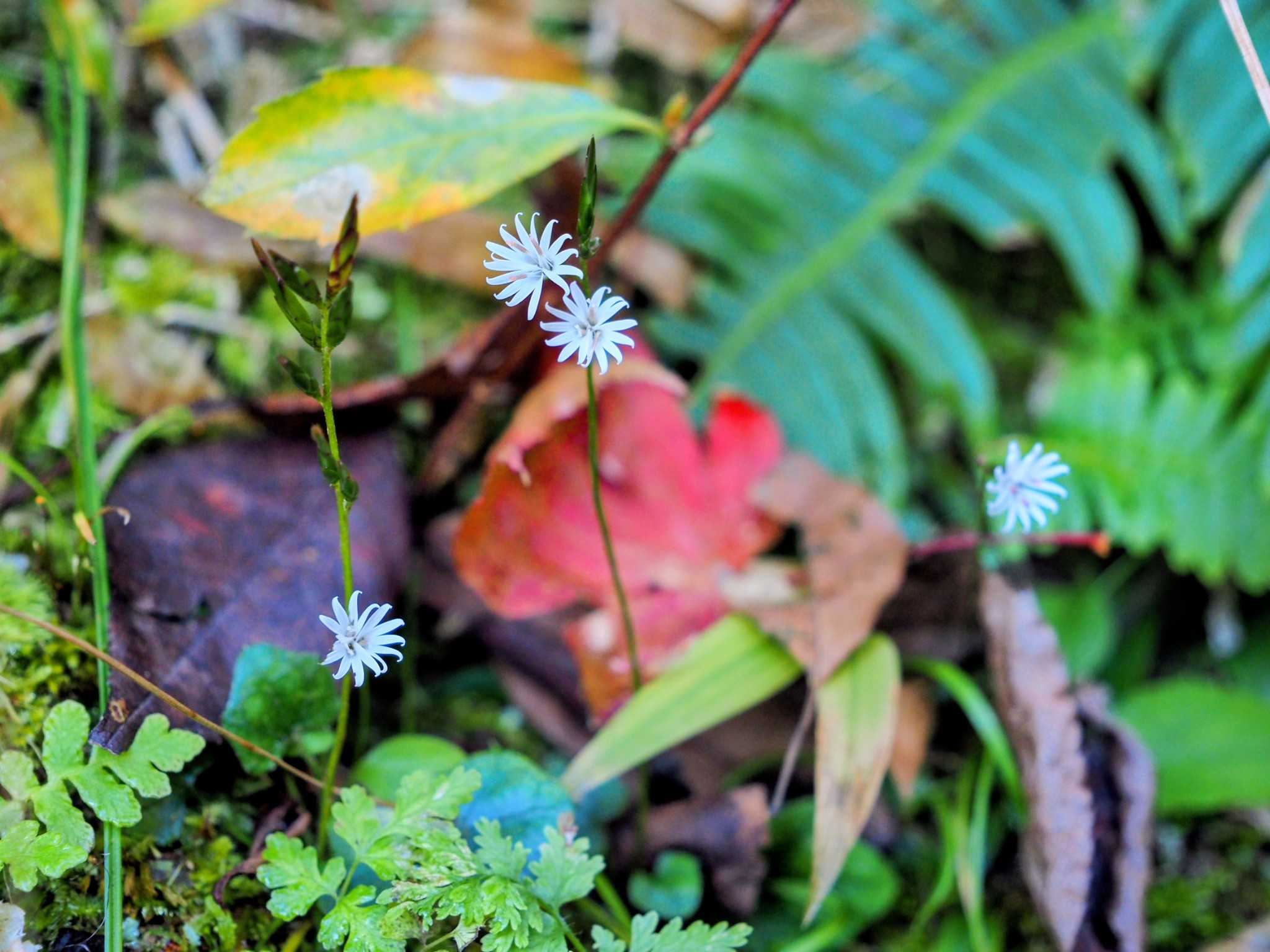 2025.10.6 若杉山 落陽コース〜上宮 星無し曙草開花! #88(2793)今朝は午前中仕事を休んで若杉山へ。8:57、奥の院遙拝所Pをスタート。天気は晴れ、気温21℃、弱風。目的は星無し曙草の観察!落陽コースを折り返し地点まで進み、そこから上宮まで歩く。星無し曙草は?1株、咲いていた!星無し曙草 ホシナシアケボノソウ、リンドウ科こちらは星のある曙草まだ蕾も沢山ついており、しばらく楽しめそう!途中、樹間から博多湾に浮かぶ能古島と志賀島上宮最後は、自然遊歩道を下り、10:45、今朝の山歩きの終了!※ 高嶺半鐘蔓、曙繻子蘭は残念ながら見つけることができなかった。