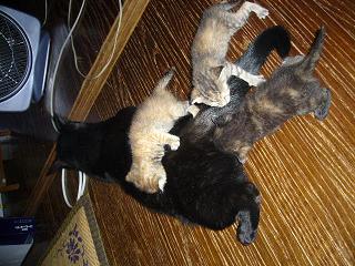 ジャムも最初は、シャ~なんて言ってたけど今では、何されてもたいがい我慢して・・・ジャムありがとねユゥの食事食べてるよう・・・でも めずらしや ユゥが何も言わないユゥどうしたとなんとユゥどうしたと・・・チビ達のあとかたずけ・・・いやいや~ユゥなんかあったらしくないよ・・・情がうつったのかな まぁそれもありか日に日に活発になり その動きが可愛いというか。。。笑ってます尻もちつきながら 走りすごい速さでやってくる可愛い明日里親希望の方がこられますが、離乳食になるまでは・・・私が母ですウフ。。