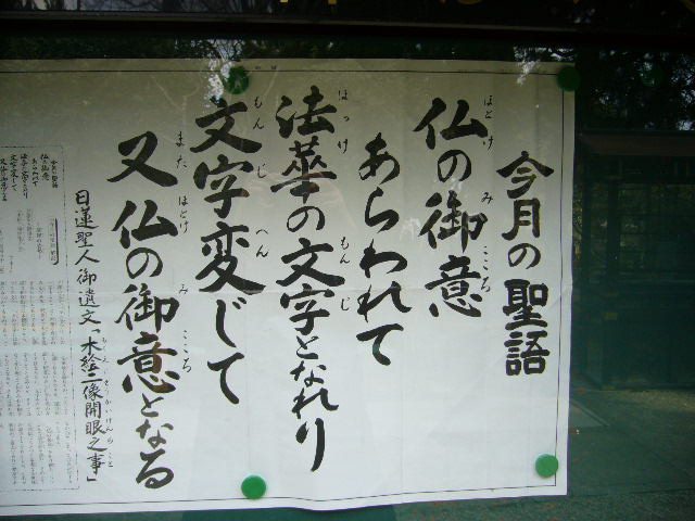 福岡市早良区にある日蓮宗徳栄時観光地にもなっているのですが、13日のこの日は、福住職様方々の日蓮宗大荒行第参行成満記念日かゆ善2食・清め行1日に7回・・お経をあげ水をあび身と魂を清める荒行はそれだけではないと聴く今日という日にシャッターを押しもしていないのに。。。 この場にあった映像は、私への何かの知らせと感じましたので消去する事にしました。m(__)m 2011年2月13日 12時17分 荒行に行かれた住職様方11人