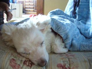 日に日に変わり・・足も弱り歩くのが精一杯でも・・私が動くたび私を探す私の顔見て倒れる昨日は、何時もの咳だと思い・・・油断してました見るなり 血を吐いたと正直ドキ!としました良く見ると茶色それも濃い何度も 量が量だっただけに・・・・「以前見た事があります、セント バーナドを保護した時あの子も同じような液体を吐いていたことを見たことがあります」でも ユゥも一生懸命がんばってます、私も頑張らなくては・・・ユゥが頑張ってるのに・・・弱音は、はけないよ・・・大切な私の家族だから・・・・・